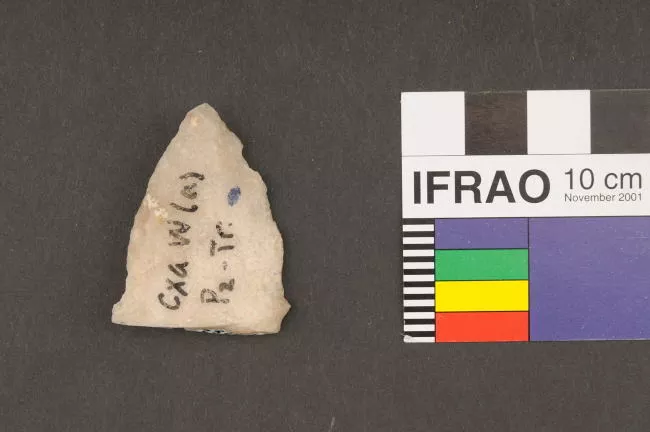 Instrumento lítico inacabado. Tiene forma triangular de extremo aguza...
