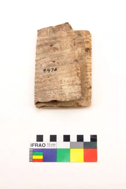 Objeto compuesto por una pieza rectangular de cuero, el cual envuelve ...