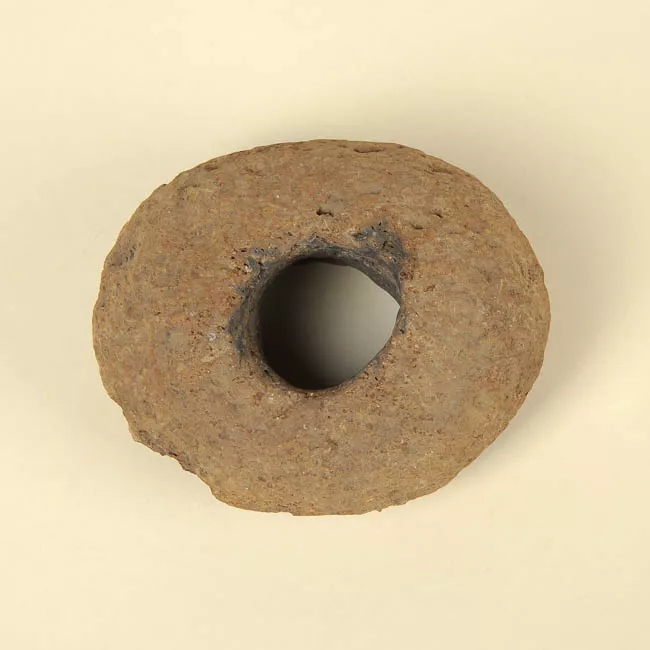 Objeto utilizado como contenedor de infusión de yerba mate. Vasija vegetal esférica con abertura superior destacada con placa metálica repujada con motivos fitomorfos
