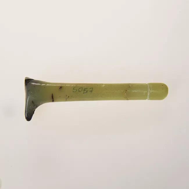 Fragmento de aguja de hueso consistente en la punta del objeto. Se observan bordes convergentes en una punta redondeada.