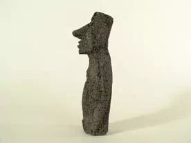 Figura realizada en basalto. Se observa un rostro antropomorfo, representado con ojos, nariz y boca en relieve. Petrográficamente se observan cristales de piroxenos.