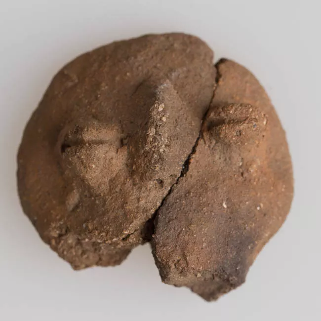 Objeto conformado por un tubo cilíndrico perforado en un extremo y con el otro cerrado en punta, y una cazoleta cilíndrica adherida verticalmente. Piedra tallada y pulida de color marron.
