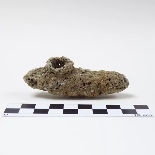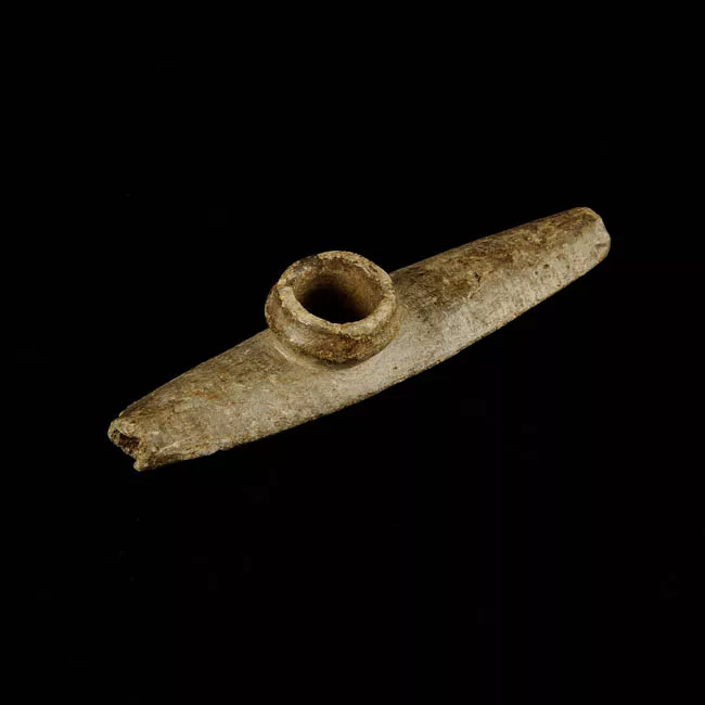 Artefacto fumatorio elaborado en piedra usado en contextos de ritualid...