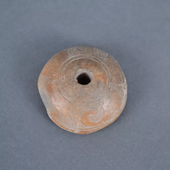 Objeto oblongo de hueso. Un extremo redondeado a modo de paleta, el opuesto recto acusa fractura. Superficie pulida y porosa. Corresponde a un fragmento de un instrumento para ajustar, romper o sujetar otro objeto.