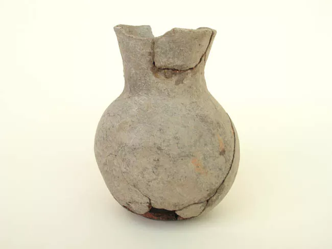 Jarro de perfil complejo y forma asimétrica. Restringido en el cuello....