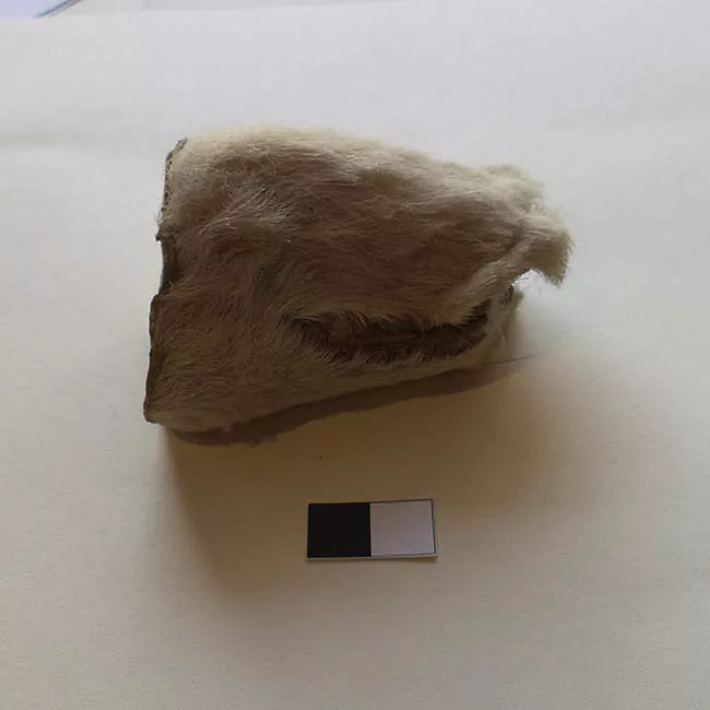 Tapa o protector de cuero de camélido, con el pelaje hacia el exterior...