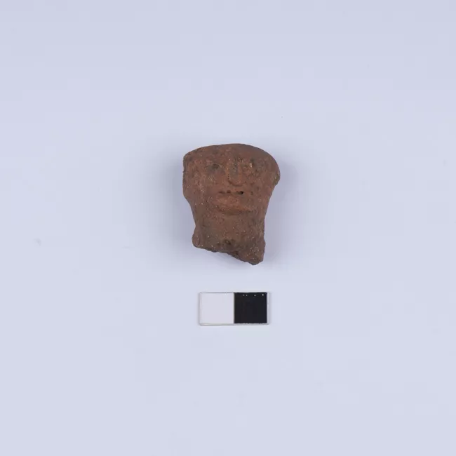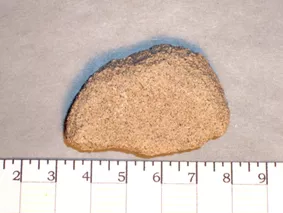 Objeto de uso probablemente ritual. Tiene forma semicilíndrica irregul...