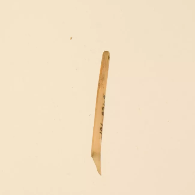 Fragmento de aguja de hueso correspondiente al extremo por donde se pa...