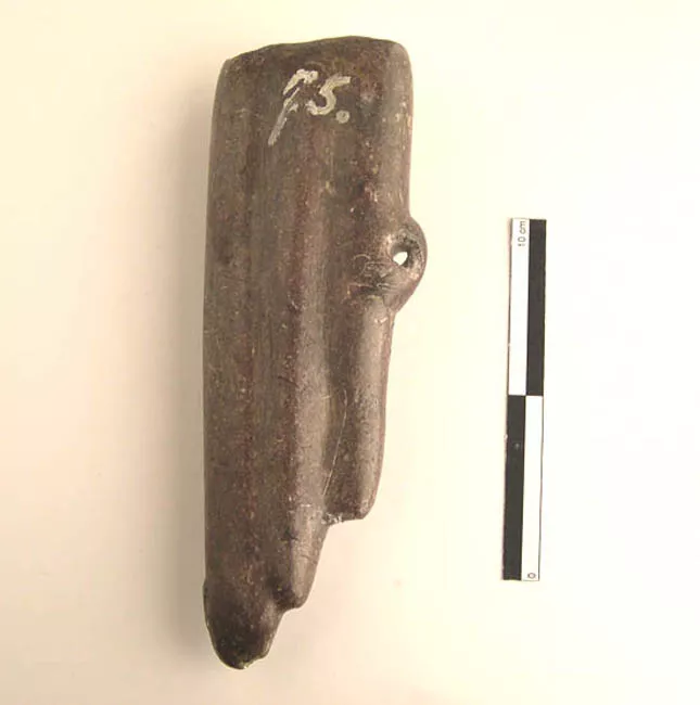 Instrumento musical de piedra, Antara de 3 tubos tallada en piedra roj...
