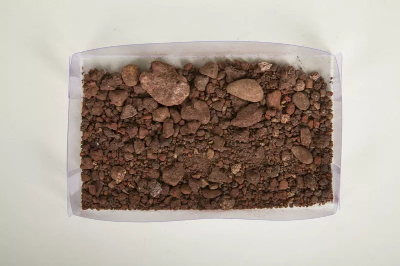 Trozo de roca de superficies irregulares, en la cara más pulida presenta símbolos grabados a través de incisiones poco profundas.