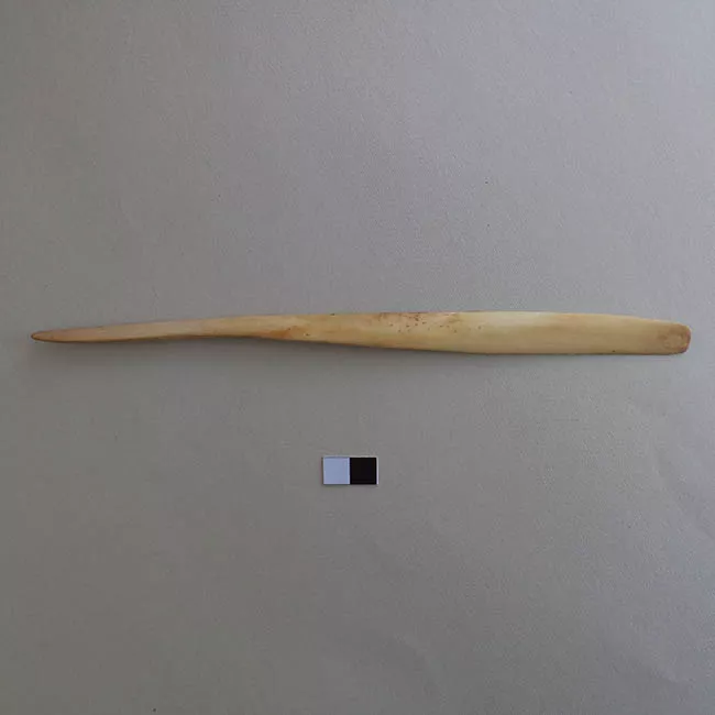 Instrumento lítico expeditivo. Tiene forma rectangular irregular con b...
