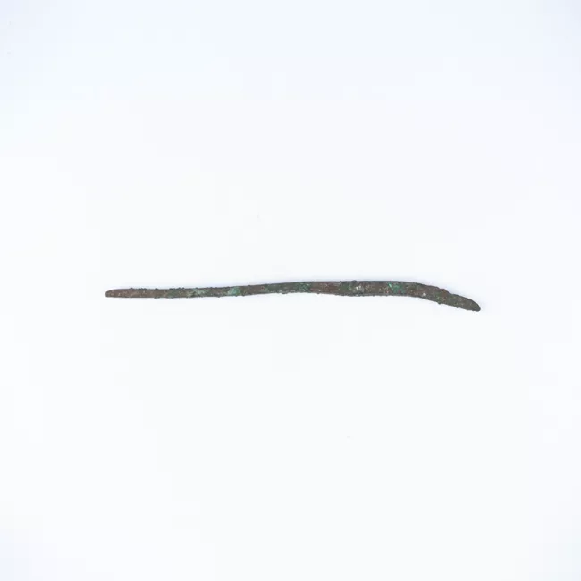 Objeto de uso personal. De forma oblonga irregular. En un extremo horn...