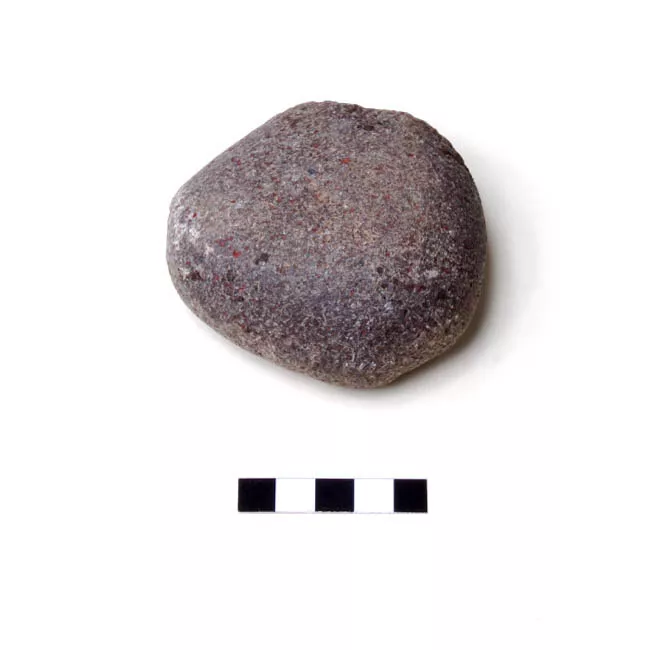Artefacto fumatorio elaborado en piedra usado en contextos de ritualidad ceremonial, política y/o social de la Cultura Mapuche. Pipa de tipo T invertida, de cuerpo fusiforme, de bordes devastados y redondeados. Su hornilla es globular restringida y sobresale de la sección medial de la pieza, conectando las dos entradas opuesta del tubo de aspiración. Su superficie es pulida de color café sin decoraciones.