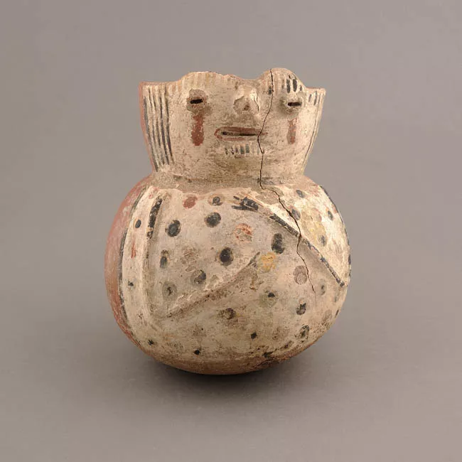 Jarro antropomorfo. Vasija simétrica, restringida con cuello, contorno...