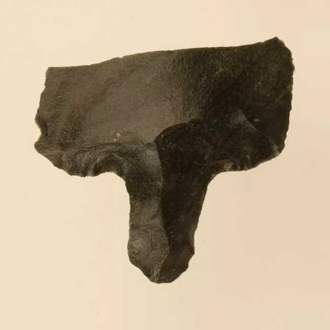 Artefacto fumatorio elaborado en cerámica usado en contextos de ritualidad ceremonial, política y/o social de la Cultura Mapuche. Su tipología se relaciona con las pipas de extensión ciega. De forma ovada tabular de base trunca con bordes redondeados. La hornilla se ubica en la mitad superior del cuerpo sobresaliendo en forma discoidal abierta. El tubo de aspiración concluye en una boquilla pequeña de forma cilíndrica. Su superficie es alisada de color natural café claro.