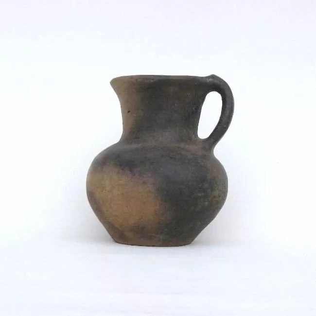 Vasija simétrica de cuerpo globular de estructura restringida con cuello y perfil inflectado. Labio plano, borde recto, cuello cilíndrico, cuerpo esférico y base plana. Posee un asa cinta de sección rectangular que nace bajo el borde y se extiende hasta donde comienza el cuerpo. La boca de la vasija es ovalada. Superficie alisada de color café.