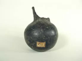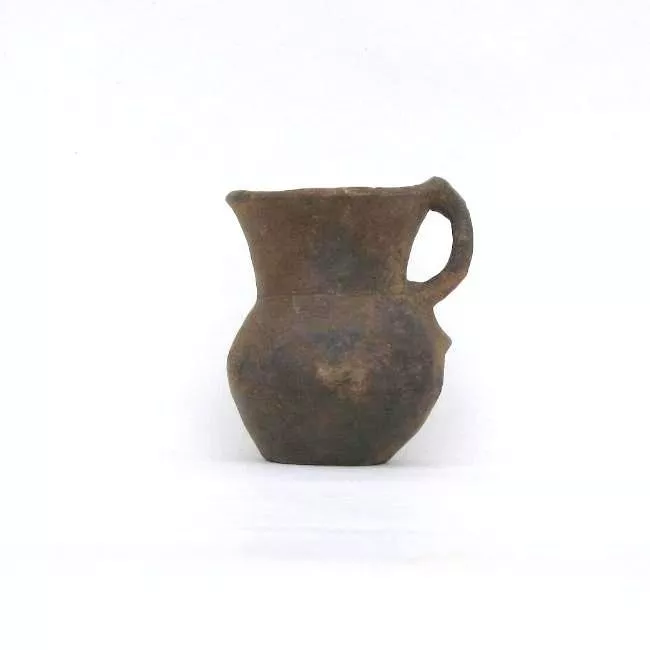 Vasija simétrica de cuerpo globular, de estructura restringida con cuello y perfil compuesto. Labio plano, borde evertido, cuello cilíndrico, cuerpo esférico y base plana. Posee un asa cinta de sección elipsoidal que nace bajo el borde y se extiende hasta el comienzo del cuerpo. Superficie alisada de color café.