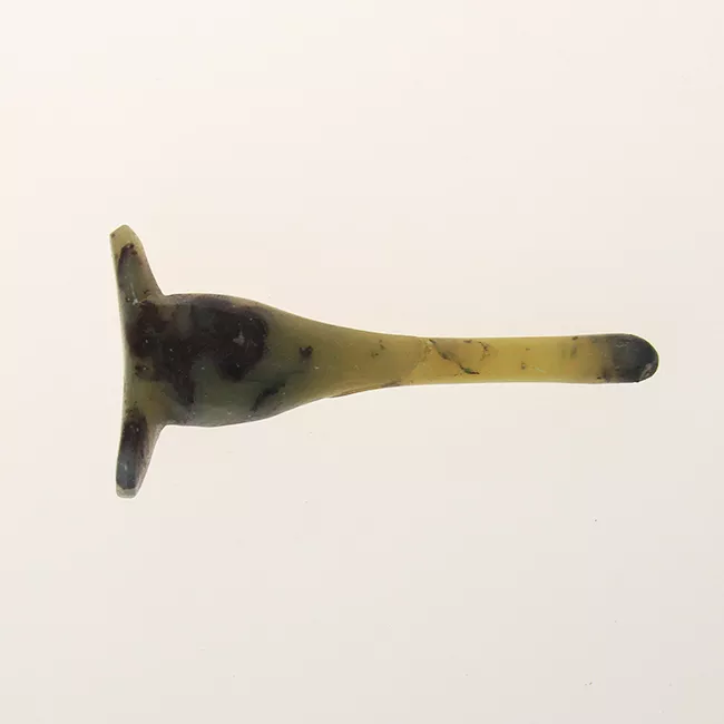 Adornos de plata de uso personal femenino correspondientes a la cultura Mapuche. Estas joyas se utilizan en las perforaciones de los lóbulos de las orejas. Son de forma discoidal y están compuestas por una placa y un gancho. La placa es de forma semicircular, con un calado interior en forma de medialuna. Tiene un gancho curvo y grueso en el sector superior el cual va en el lóbulo de la oreja. La decoración consiste en dos protuberancias semiesféricas ubicadas en el sector superior de la placa por el anverso y dos protuberancias iguales ubicadas en el reverso de la placa. En el sector del anverso se observa una decoración circular realizada con cuño.