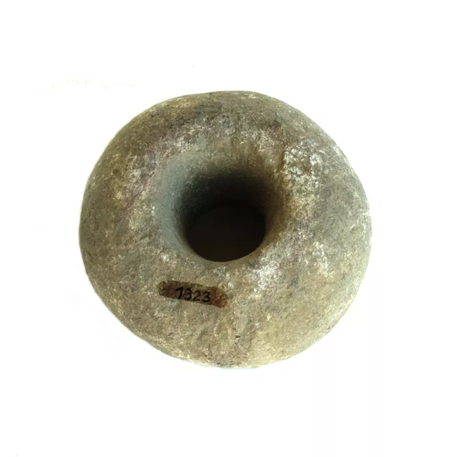 Objeto cilíndrico de bordes redondeados con perforación en la parte ce...