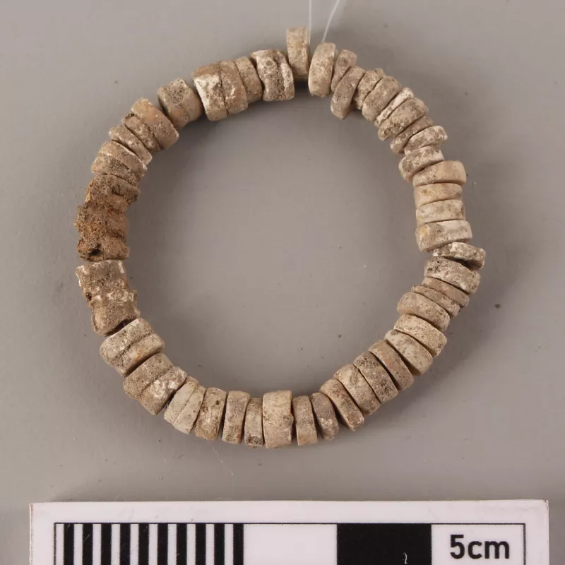 Conjunto de 56 pequeñas cuentas discoidales de color blanco talladas e...
