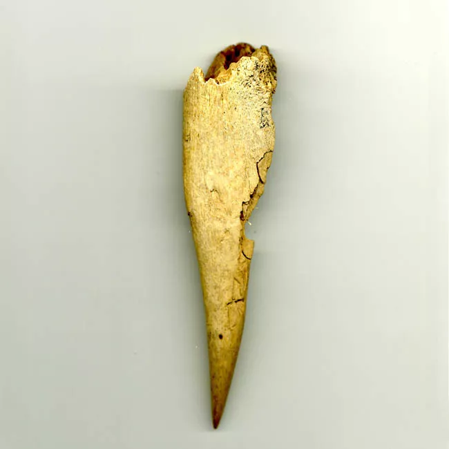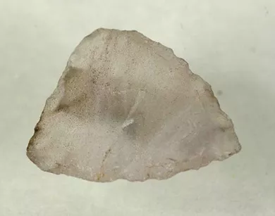 Punta triangular corta,base levemente escotada,ambas superficies levem...