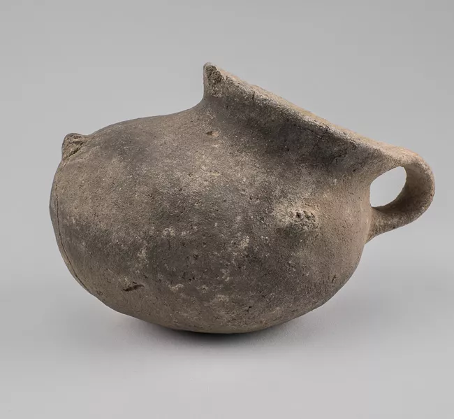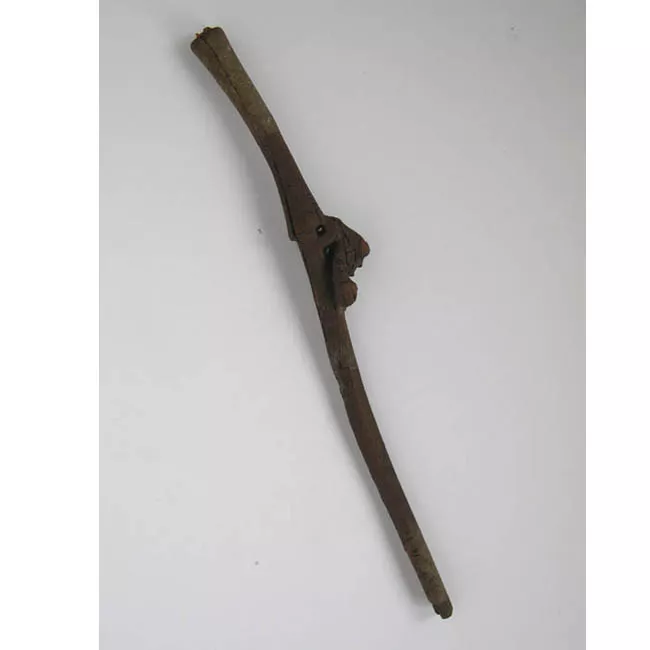Objeto de madera, forma tubular, curvado, tallado en una sola pieza. E...
