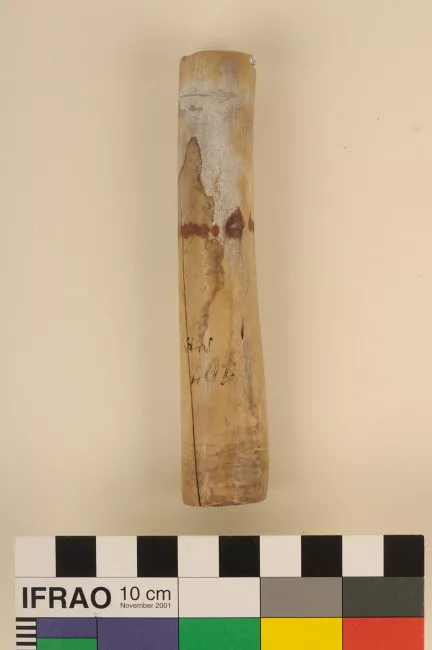 Herramienta usada en las faenas de salineros de Cahuil. Objeto rectang...