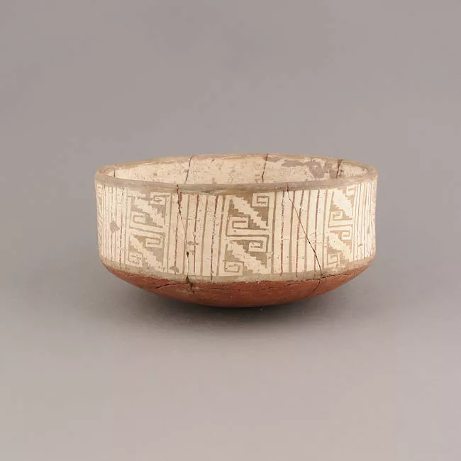 Contenedor de uso doméstico y/o ritual simétrico, de estructura no restringida y perfil simple. Corresponde a una vasija o plato Diaguita de cuepro cilíndrico, borde directo y base convexa, engobado en el interior de color blanco y la base del exterior de color rojo. Tiene una banda decorativa en el exterior donde se exhibe una variante del patrón Zigzag (González, 2013) en negro y rojo sobre blanco. Negro deslavado.