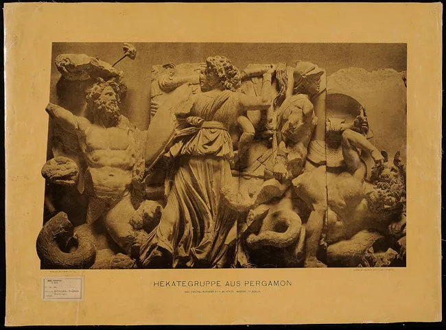 Fragmento de friso con escena compuesta por un personaje masculino bar...