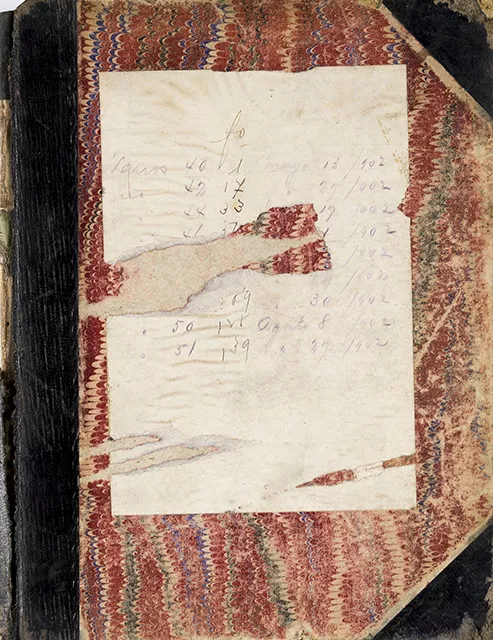 Cartón-Encuadernación, Papel-Encuadernación, Papel-Manuscrito, Tinta-Manuscrito, -Manuscrito, Cuero (material animal)-Encuadernación
