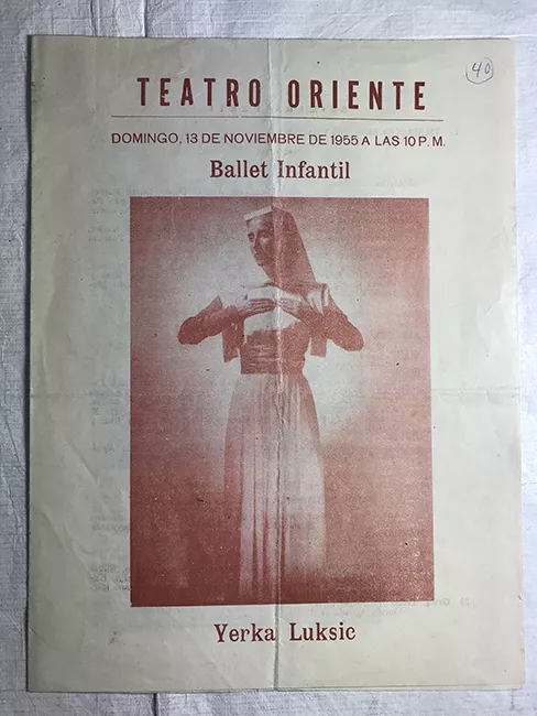 Programa de presentación del Ballet Infantil de Yerka Luksic en el Teatro Oriente