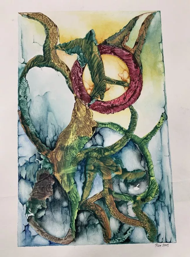 Obra en formato rectangular en posición vertical. Composición abstract...