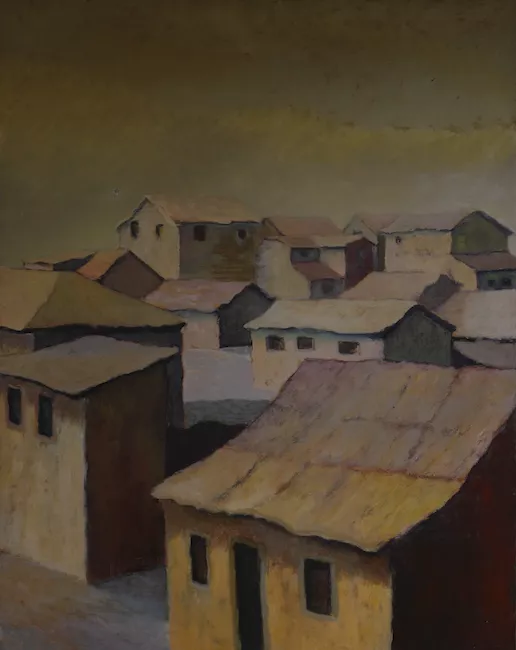 Obra de formato rectangular, vertical. Composición en base a un grupo ...