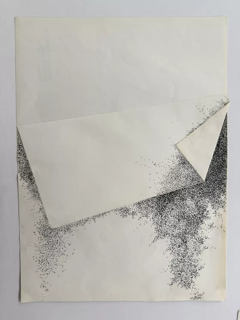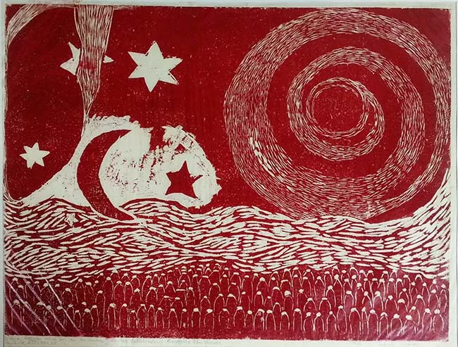 Obra visual de formato rectangular y disposición vertical. Dibujo mono...
