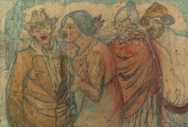 Obra en formato rectangular, horizontal. Composición en base a cuatro ...