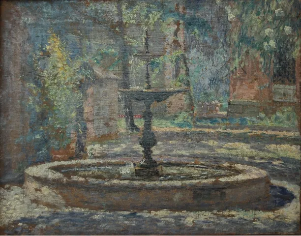 Obra de formato rectangular y disposición vertical. Figura femenina de...