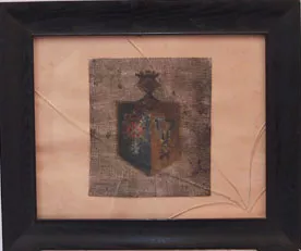 Pintura con marco dorado. Retrato de personaje masculino con bigotes. ...