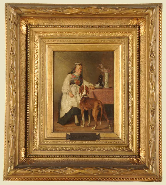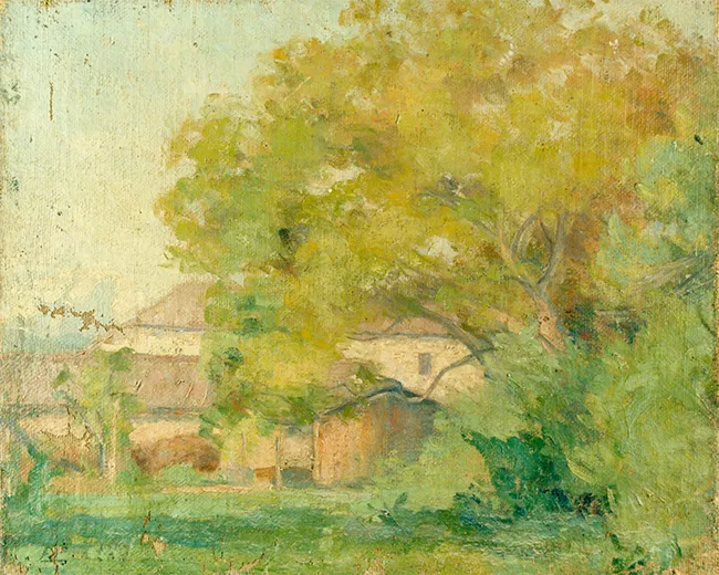 Obra de formato rectangular. Composición en base a paisaje rural. En p...