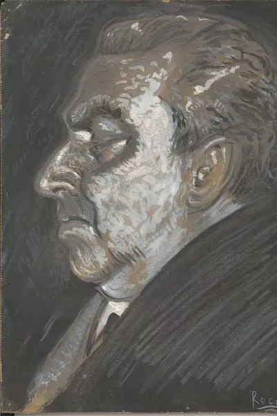 Obra rectangular, orientación horizontal. Imagen blanco y negro de for...
