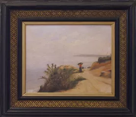 Obra de formato rectangular horizontal, composición en base a paisaje ...