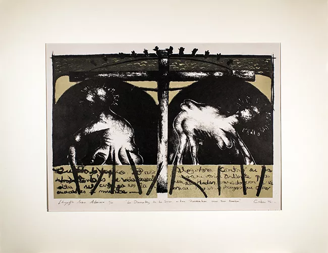Obra rectangular, orientación horizontal. Imagen blanco y negro. Línea...