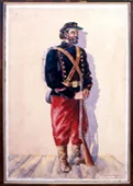 Obra pictórica de orientación horizontal en la que se representa una e...