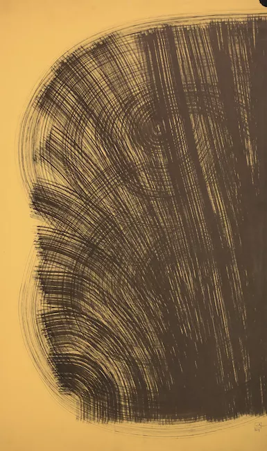 Composición rectangular, orientación vertical. Retrato en tonos grises de un hombre vestido con uniforme militar en la proa de una embarcación, con una serie de personajes hacia el fondo. El personaje principal está retratado de cuerpo entero, de frente, con la boca abierta -como gritando-, la mano izquierda en alto y sosteniendo una espada con la derecha. Tras él hay una mujer rubia y vestida de blanco, alzando una bandera chilena. Más allá, por la derecha, se asoma un personaje vestido de marinero, agarrado a la barandilla del barco, con expresión amenazante. Al fondo hay otra embarcación con varios personajes en movimiento, varios de ellos subidos al mástil y alzando armas. El mar está agitado y el cielo está nublado.