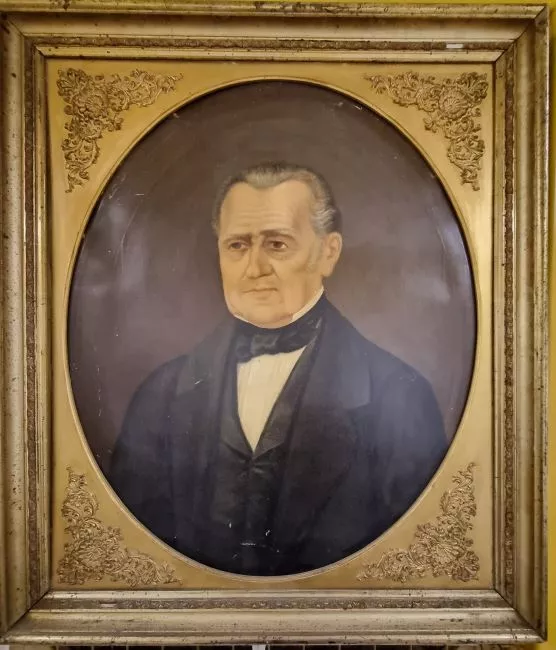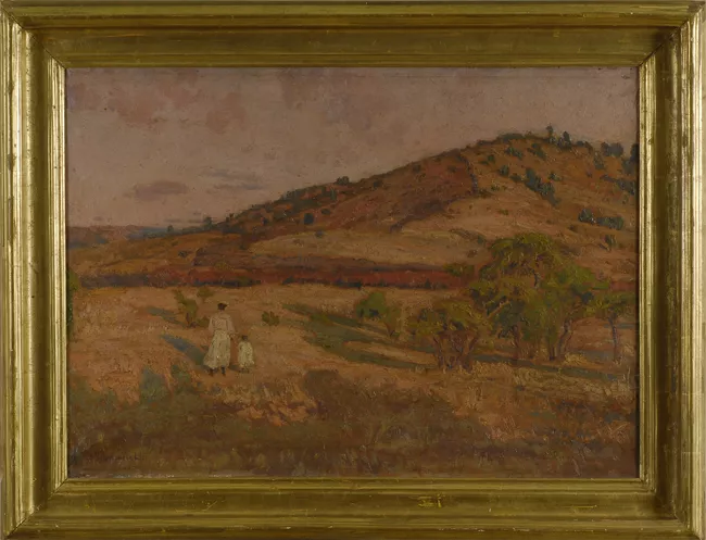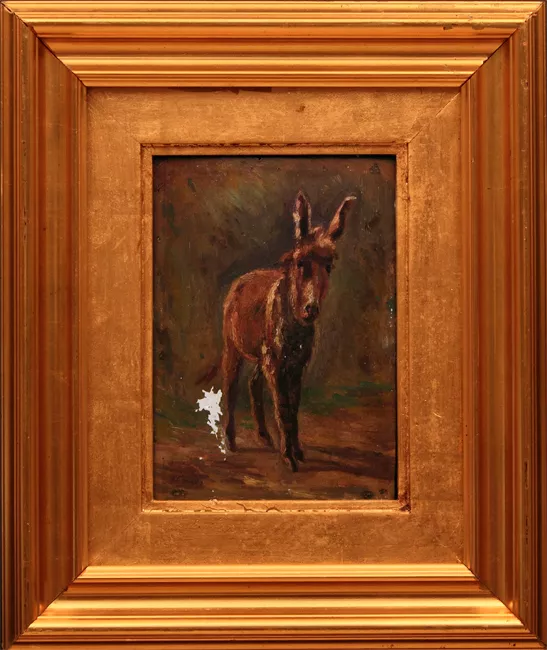 Obra de formato circular en un marco cuadrado. Retrato femenino. La mu...