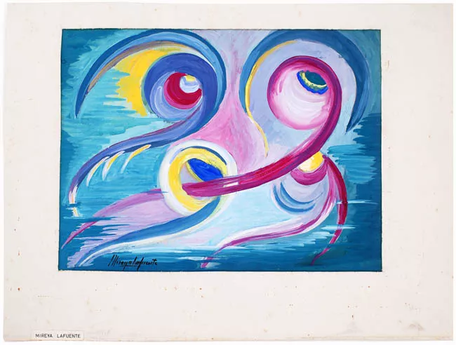 Díptico compuesto por dos obras bidimensionales en formato rectangular y orientación vertical. La tabla de la derecha esta dividida en dos partes con relieves dorados en la zona superior. En la mitad superior se distingue una figura alada expuesta de cuerpo entero, presentado de medio perfil derecho, con un recuadro de texto a su izquierda. En la mitad inferior se distingue una figura alada, presentada de cuerpo entero con los brazos abiertos, al lado derecho tres figuras arrodilladas lo observan.
