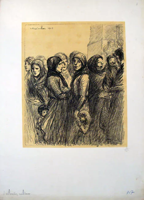 Composición en base a grupo de figuras masculinas con uniforme, al cen...