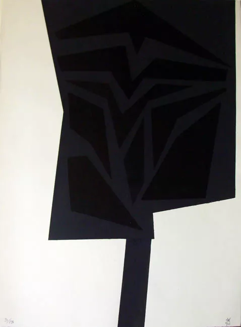Obra en formato rectangular, vertical. Composición monocromática, en b...