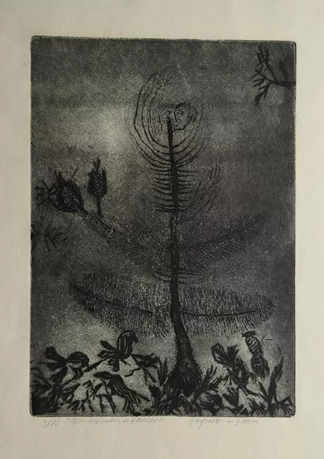 Obra de formato rectangular de orientación vertical. Grabado figurativ...