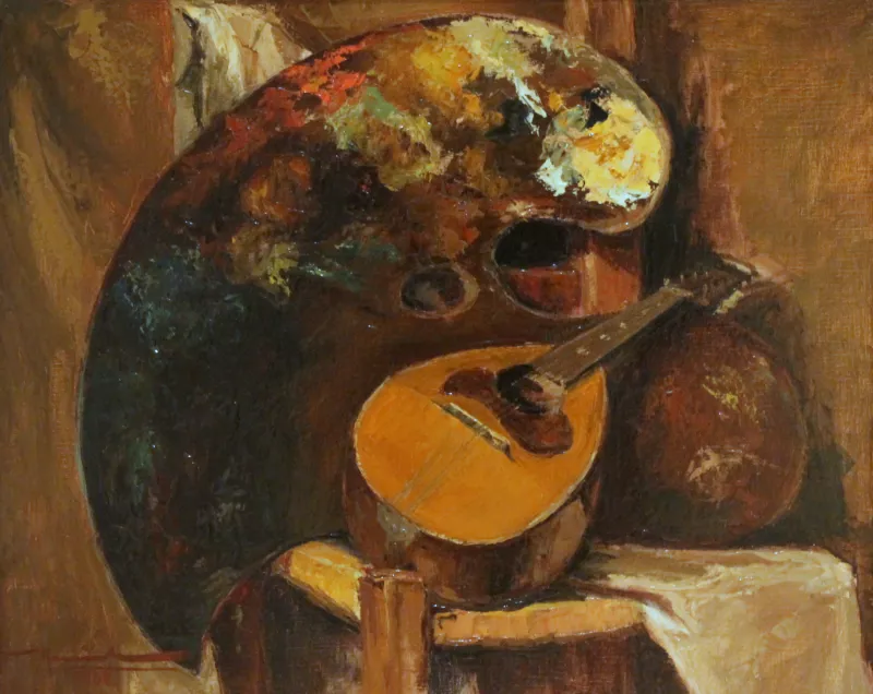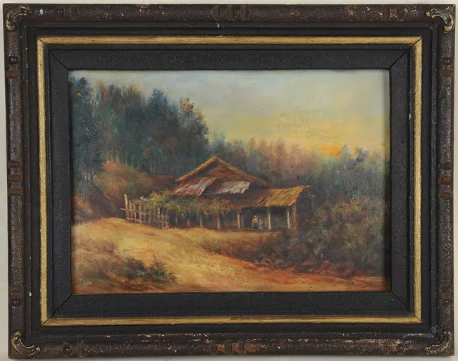 Composición en base a un paisaje donde se observa una casa, probableme...