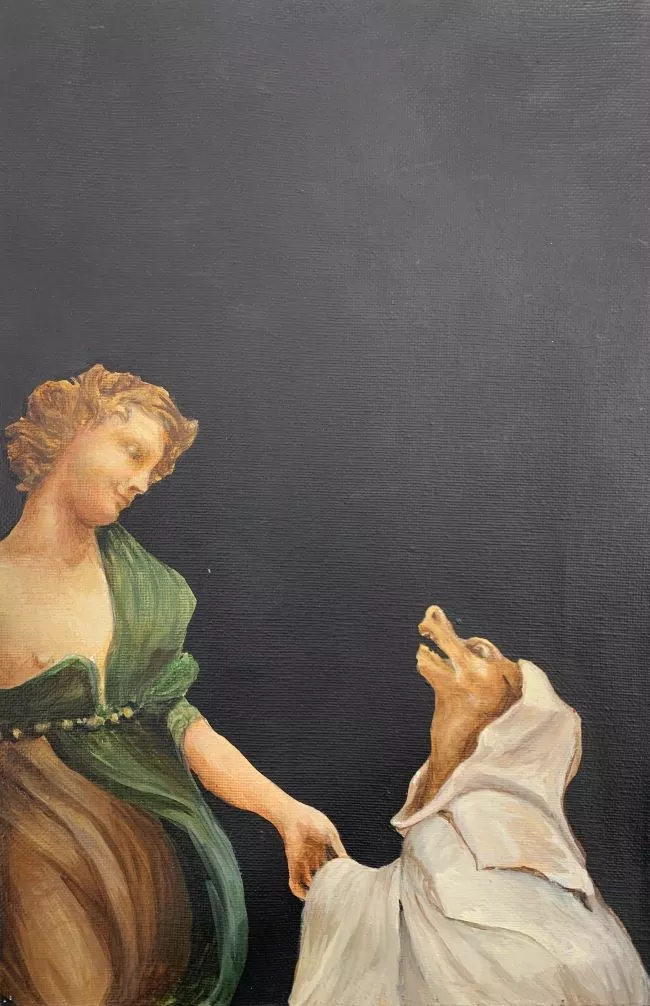Obra en formato rectangular de posición vertical. En primer plano y so...